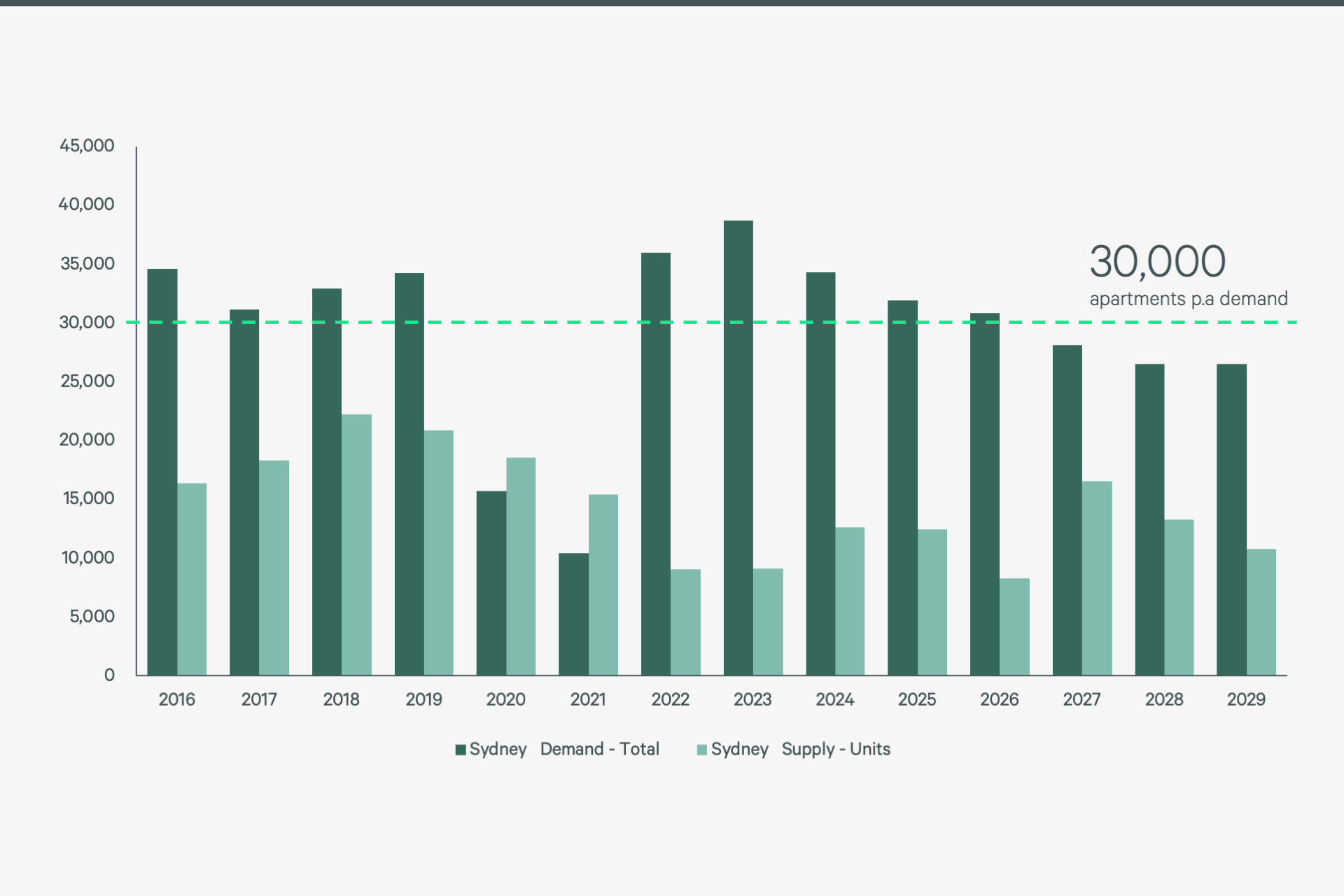 Figure 1: Demand far exceeds the supply pipeline in Sydney
