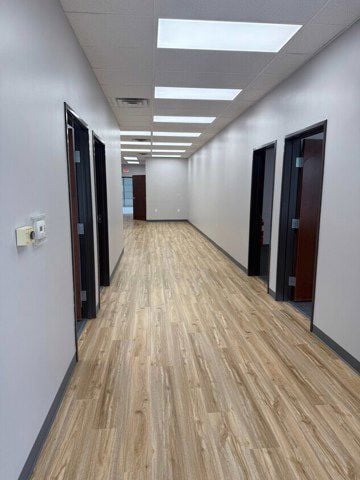 Suite C17 starts with a private lobby, followed by a hallway that leads into the warehouse. Before reaching the warehouse, you will find seven offices and two bathrooms. The warehouse has one grade level door and can be expanded