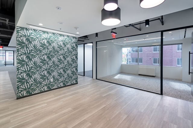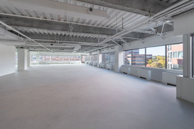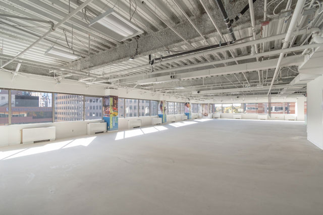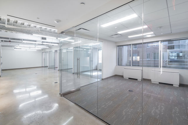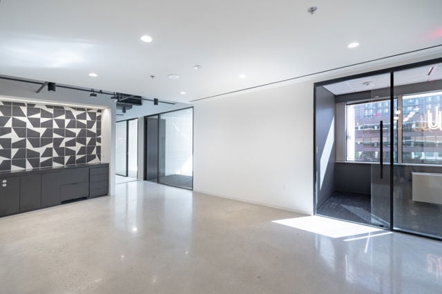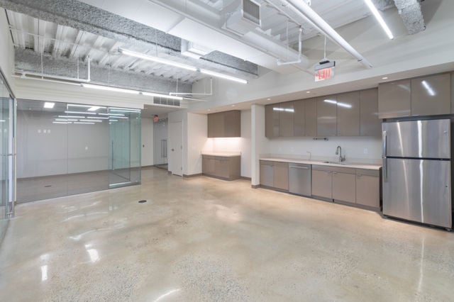 Features polished concrete floors and glass front offices