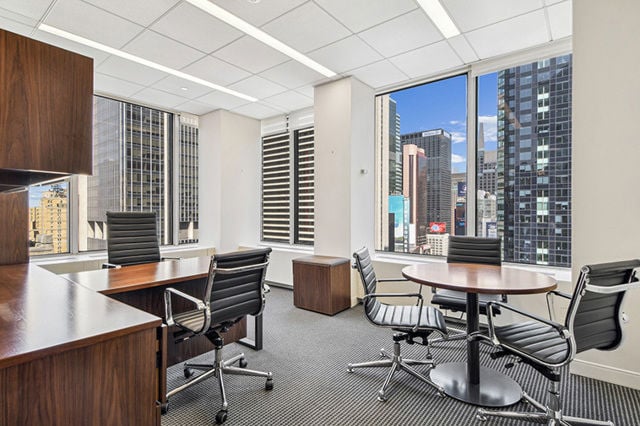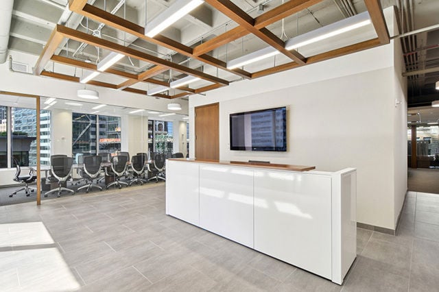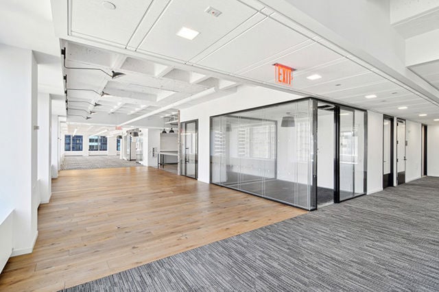 High-end existing full floor installation with 3 offices, 1 conference room, 3 meeting rooms, open area for 96 workstations and pantry. The floor has an abundance of natural light and features glass-fronted offices and conference rooms with a mix floors/ carpeting and open/dropped ceilings. Landlord will modify and upgrade.