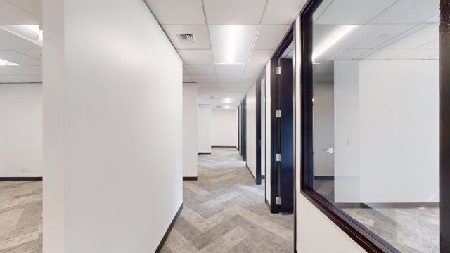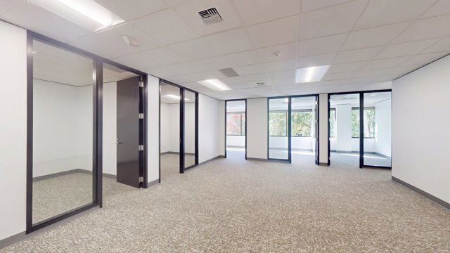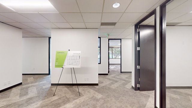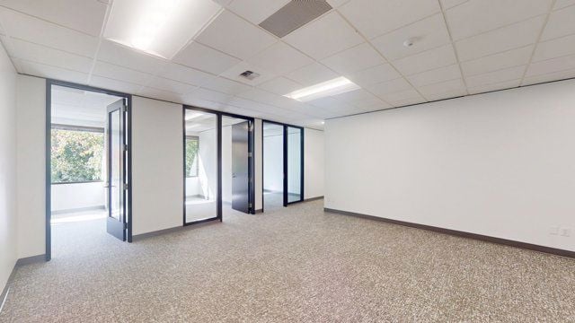 Available November 1, 2026. Efficient buildout with reception, four private offices and break room.