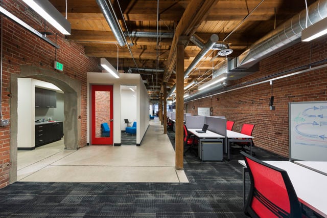 Brick and timber 1st floor space with private restroom for office or retail use. Good signage visibility from 16th Street. For office inquiries, please contact Sarajane Goodfellow. For retail inquiries, please contact Madison Syvongsa.