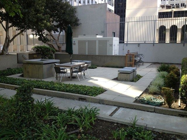 East West Bank Plaza is located in the financial district of Downtown Los Angeles. It is close to many good restaurants and shops.
